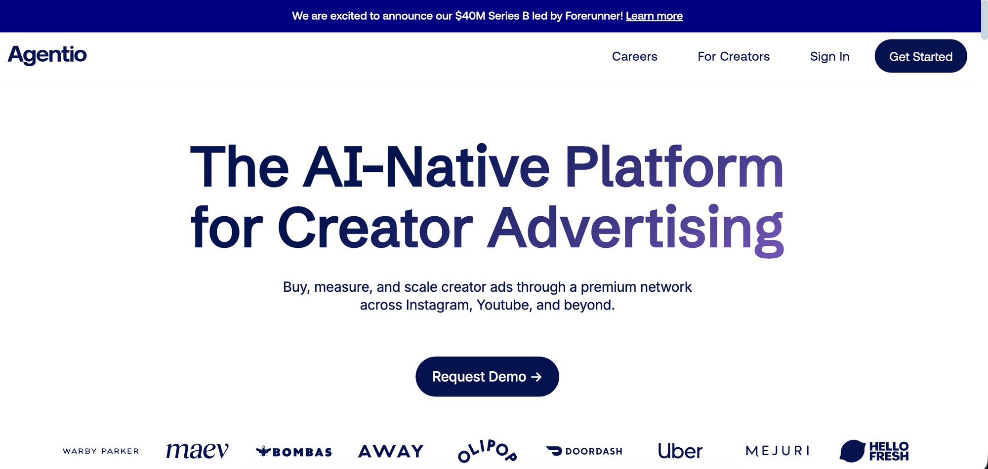 Eurie Kim, Managing Partner of Forerunner, explains the investment thesis: "Creators have become one of the most powerful forces shaping consumer behavior, but the infrastructure to support them hasn't kept pace. Just as Google and Meta built platforms to unlock search and social, Agentio is building the infrastructure needed for creator-led ad development and monetization at scale."